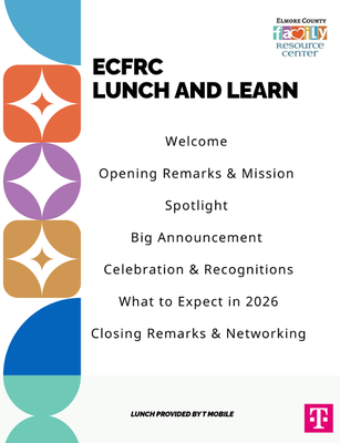 Elmore County Family Resource Center is hosting this Lunch & Learn to share important updates, highlight new opportunities for the community, and strengthen connections with their partners. This gathering allows for people to come together, learn, and continue building a stronger, more informed support network for the families they serve.