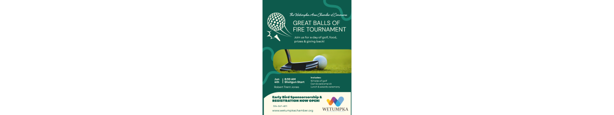 Swing Big. Burn Bright. Get ready to turn up the heat on the fairway at the Wetumpka Area Chamber of Commerce’s most exciting summer fundraiser!